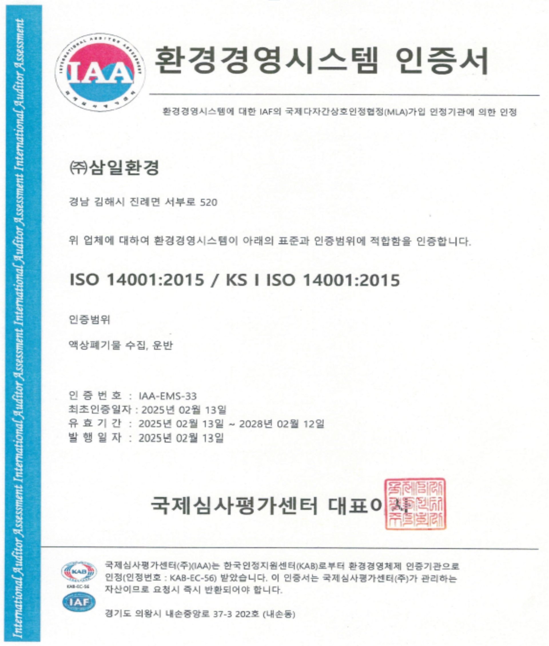 그렇다면 저희 삼일환경에 문의 주세요. 최선을 다하겠습니다.